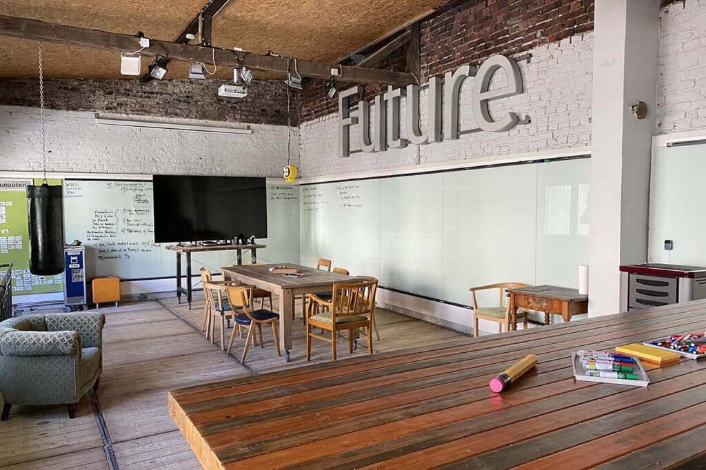 Der denkubator ist mehr als nur ein Arbeitsraum – er ist ein Schmelztiegel für Ideen, ein Ort, an dem Träume in die Realität umgesetzt werden. Unsere über 140 Quadratmeter große Location bietet eine voll ausgestattete Workshop-Umgebung, die speziell darauf ausgerichtet ist, eure kreativen Prozesse zu unterstützen. Hier findet ihr alles, was ihr benötigt, um erfolgreich zu sein: Whiteboards, einen Präsentationsbereich für Vorträge und eine Lounge, um zwischendurch Energie zu tanken.